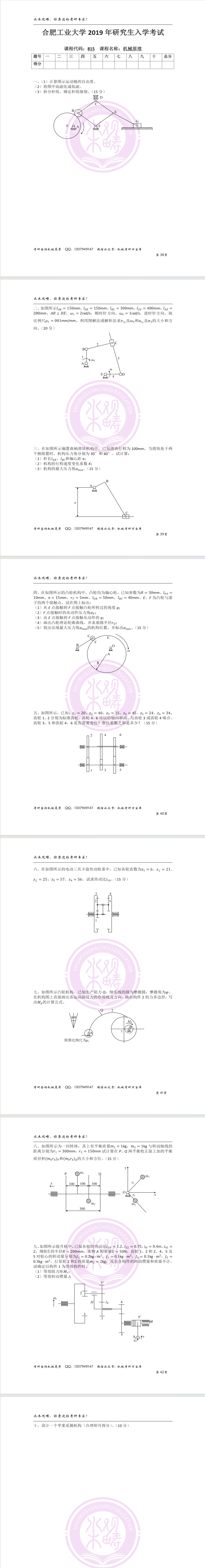 2019年合肥工业大学815机械原理真题分享(含答案)