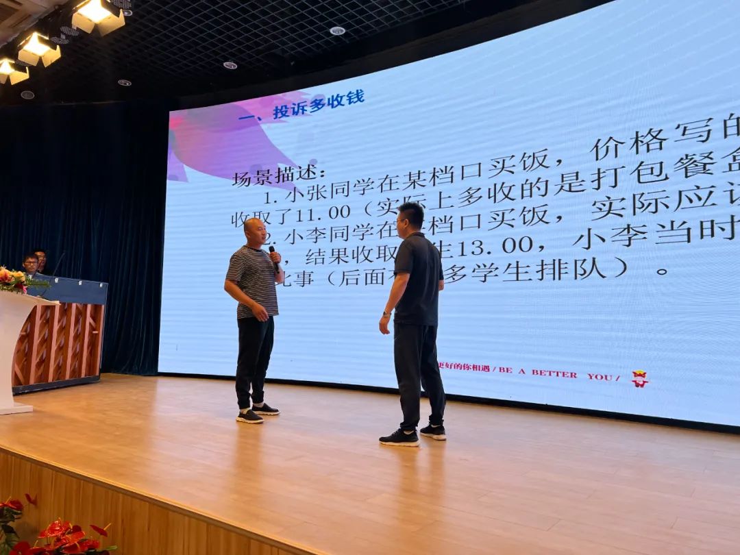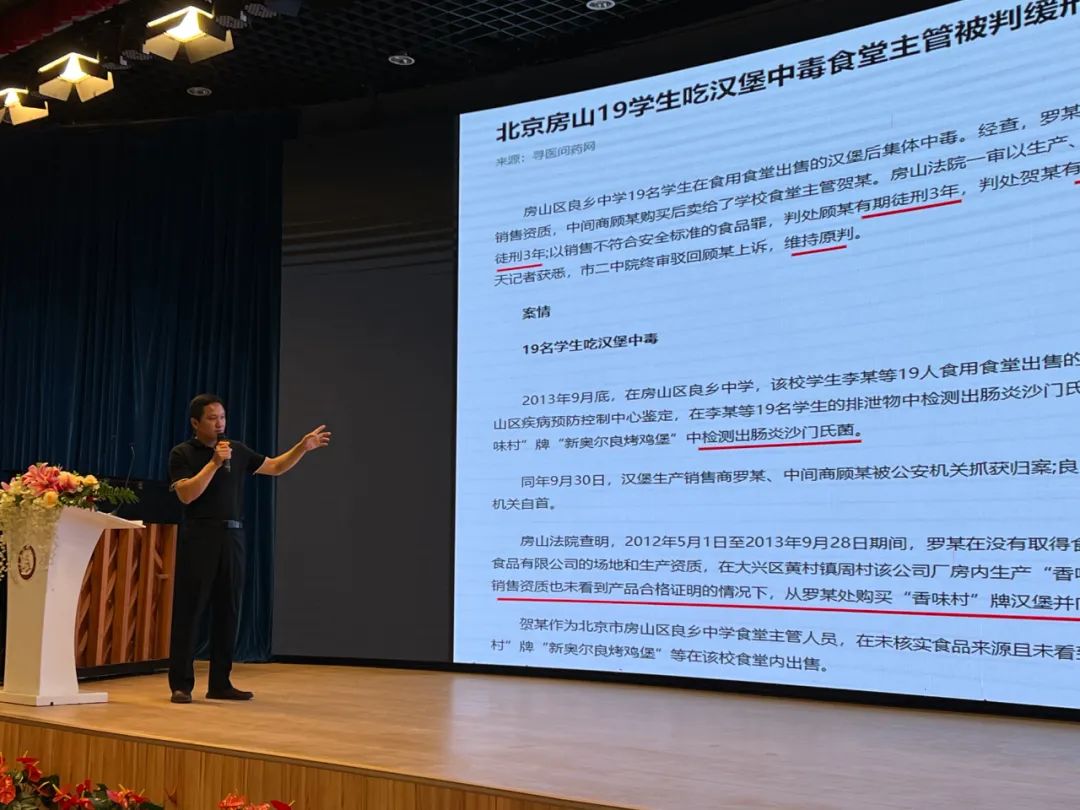 刘金辉队长结合近期国内发生的校园食品安全事故案例和执法实践中易出现的食品安全隐患,对食品安全操作规范及《食品安全法》的条文进行了深入浅出的专题讲解。