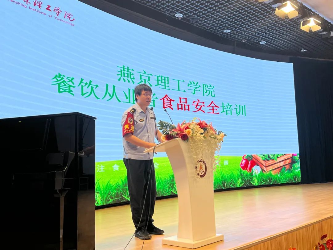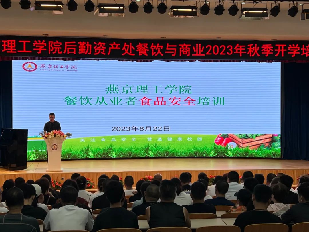 为落实食品安全管理,提升后勤餐饮服务品质,保障开学后餐饮与商业服务质量, 8月22日上午9:00,燕京理工学院后勤服务保障团队在报告厅集中组织了食品安全专题培训,四个餐厅及有关食品经营商户参加。此次培训邀请了三河市市场监督管理局高楼所刘金辉队长出席,后勤餐饮与商业中心郝中华老师主持培训会。