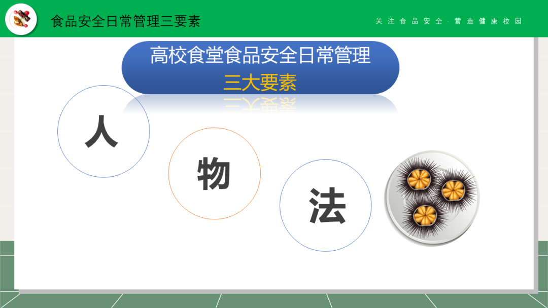 餐饮与商业中心侯立伟老师重点讲解了食品安全的五大要点、食品安全日常管理的三要素。并对如何确保食品安全、如何有效处置食品中毒事件带领参训人员进行了学习。