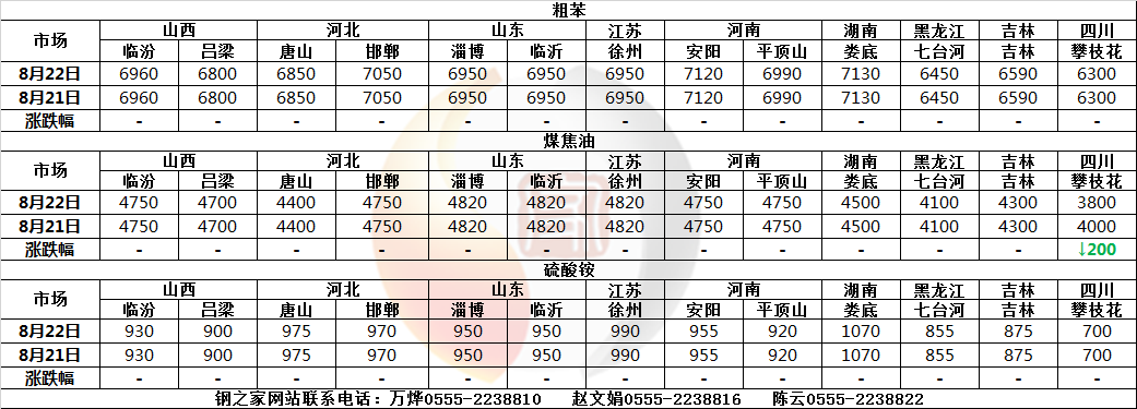 宁夏化工焦:某大型焦企将化工焦S1.6下调,跌后承兑出厂粒度≥25mm为1420;10-30mm(P)为1640;25-40mm(P)为1590,均跌100。第二轮下跌,累跌180,自8月22日零点起执行。