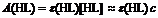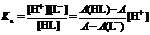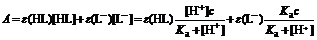HL是L-互为共轭酸碱,它们的平衡浓度之和等于弱酸HL的分析浓度c。只要两者都遵从朗伯-比尔定律,就可以通过测定溶液的吸光度求得[HL]和[L-]的比值。
