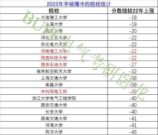 一类是往年大热,23爆冷。主要是顶尖985、热门211,以及22年分数已经很高的双非,前两年分数线太高导致学生不敢报考;