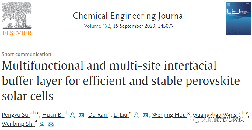 小太阳,公众号:钙钛矿太阳能电池长江师范学院苏鹏羽&石文兵&电气通信大学毕欢&西南科技大学刘莉CEJ:多功能、多位点界面缓冲层用于高效稳定钙钛矿太阳能电池