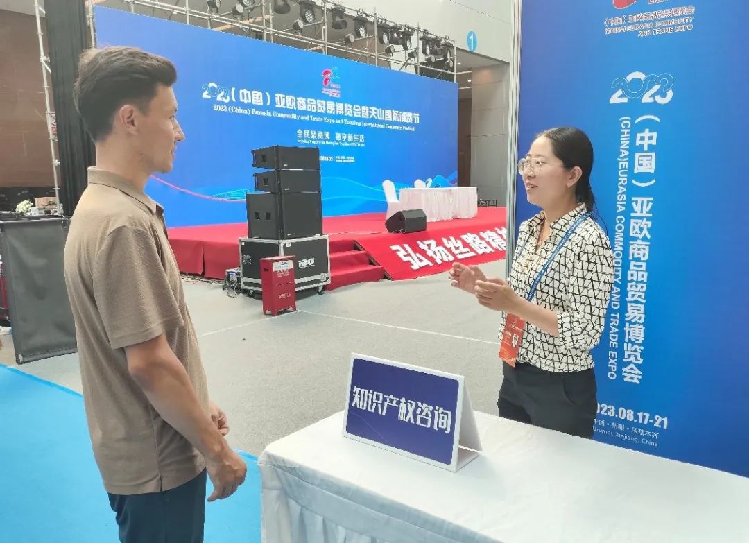 2023(中国)亚欧商品贸易博览会有来自40个国家和地区、7个国际组织的嘉宾参加展会。北京纺织工程学会、朝阳(设计服务业)知识产权纠纷人民调解委员会派出人民调解员开展现场知识产权咨询服务,为前来参会的企业和观众开展商标、专利等知识产权保护、维权答疑活动。
