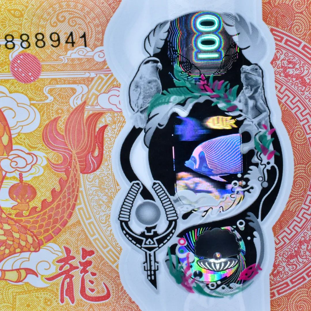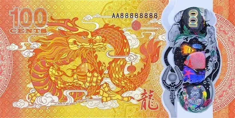 这枚钞以生肖文化为背景,提取中国龙和斐济朱槿花作为主视觉设计元素,汇集多重亮点,呈现出瑰丽的艺术魅力与深厚的文化内涵,饱受藏家关注!