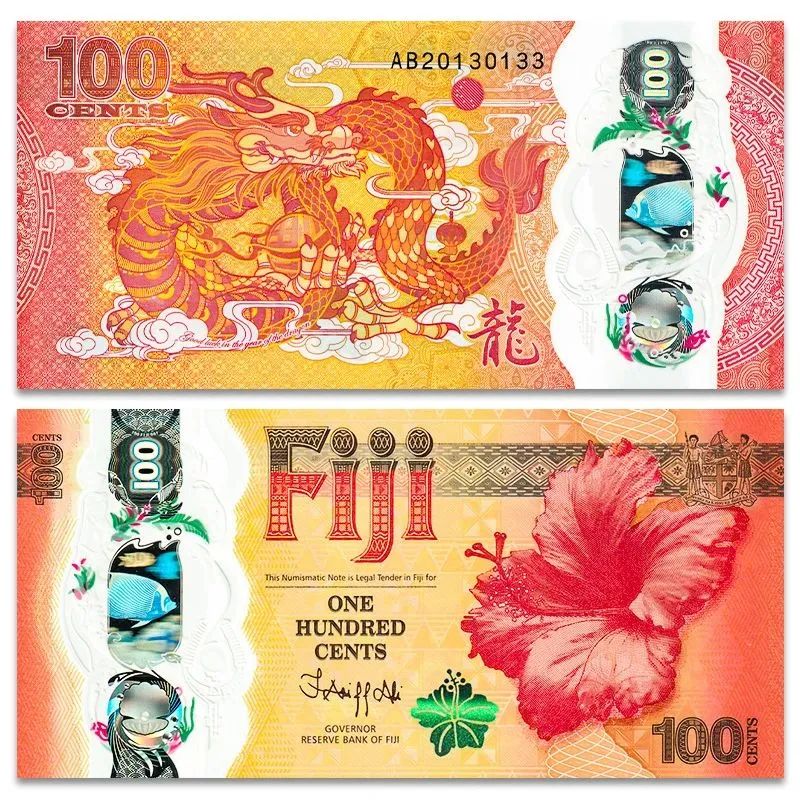 斐济龙年生肖纪念钞沿袭了斐济财神钞双正面设计的特点,以十二生肖为灵感来源,将中国龙、朱槿花等具有两国特色又具有美好寓意的设计融合在一起。
