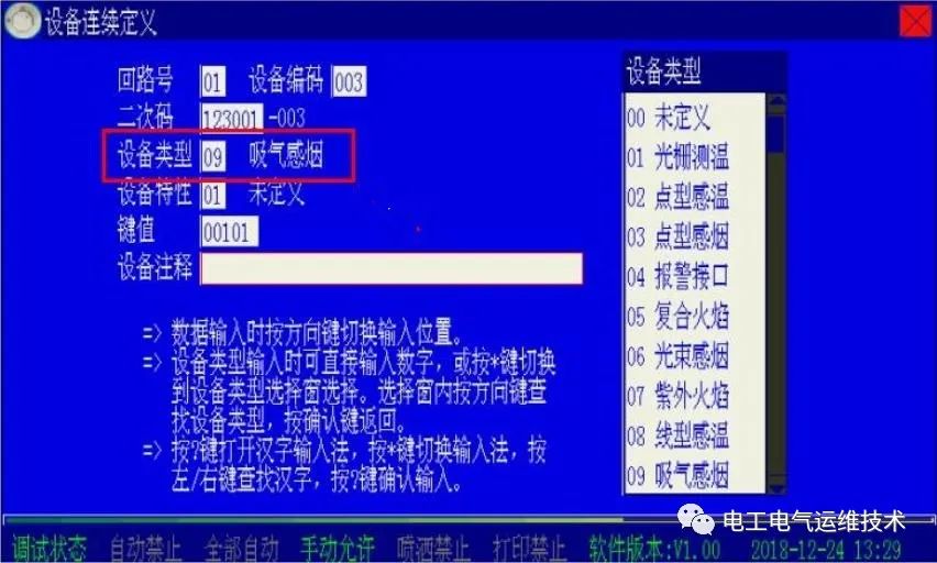 消防控制器外接的消防设备如直接控制盘、光电烟感等均需要进行编码设定,每一种类型设备对应一个特定的代码,每个设备对应一个原始编码和一个现场编码,设备定义就是对某一原始编码设备的现场编码进行设定。通俗的说,就是将现场定义的设备注册到消防联动主机上,被定义的设备可以是已经注册在控制器上的,也可以是未注册在控制器上的。
