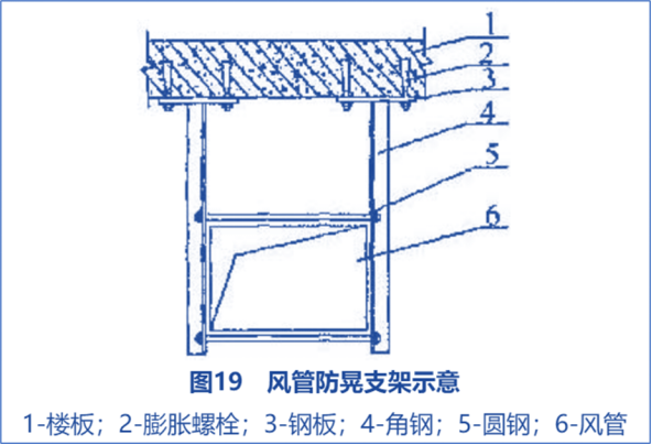 防晃支架用于支撑风管和水管,风管防晃支架见图19。
