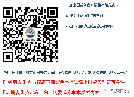 搜索微信;富源出国劳务 或查找公众号【富源出国劳务】关注;