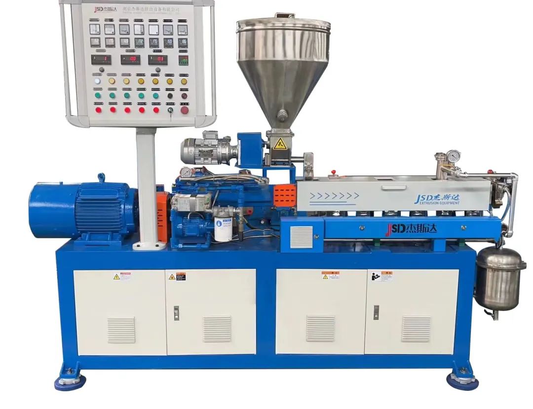 南京杰斯达挤出设备有限公司是由一批多年在挤出机生产研发设计,生产技术,销售服务的坚强团队组建的高新技术公司,目前只要主要致力于,高效单,双螺杆混炼挤出机组为代表的高聚物配混改性成套设备制造及相关工艺与技术的开发制造,并提供技术咨询,技术服务,直到交接钥匙工程。