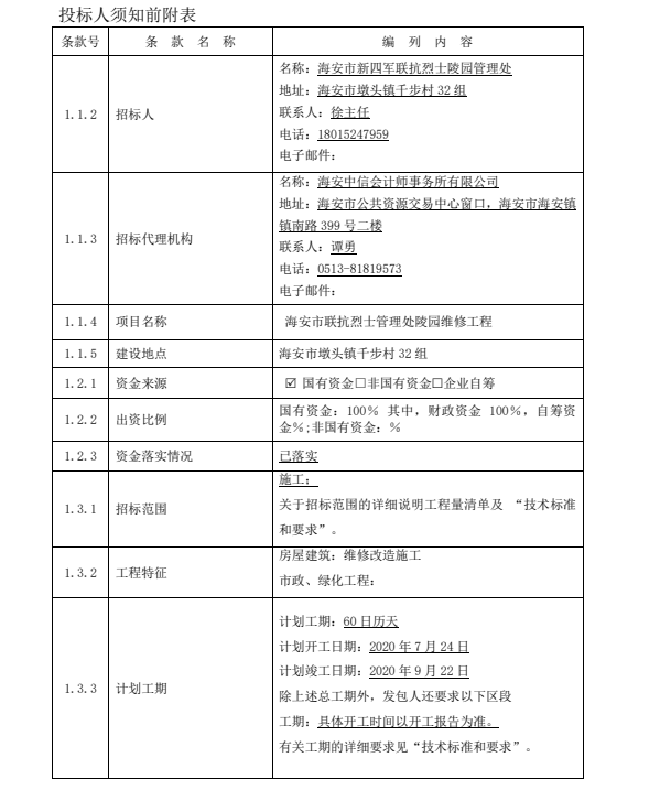 (4)计划开、竣工时间:2020 年 7 月 24 日至 2020 年 9 月 22 日,工期:60 日历天。具体开 工日期以招标人或监理人发出的开工通知中载明的开工日期起算