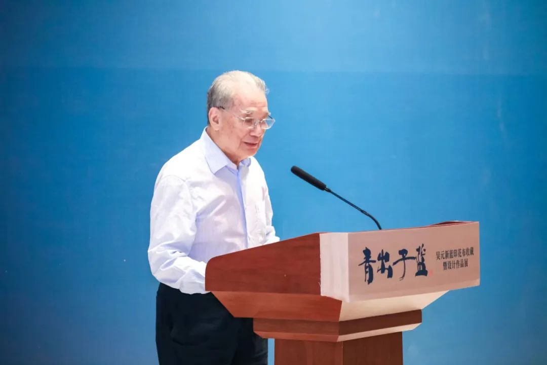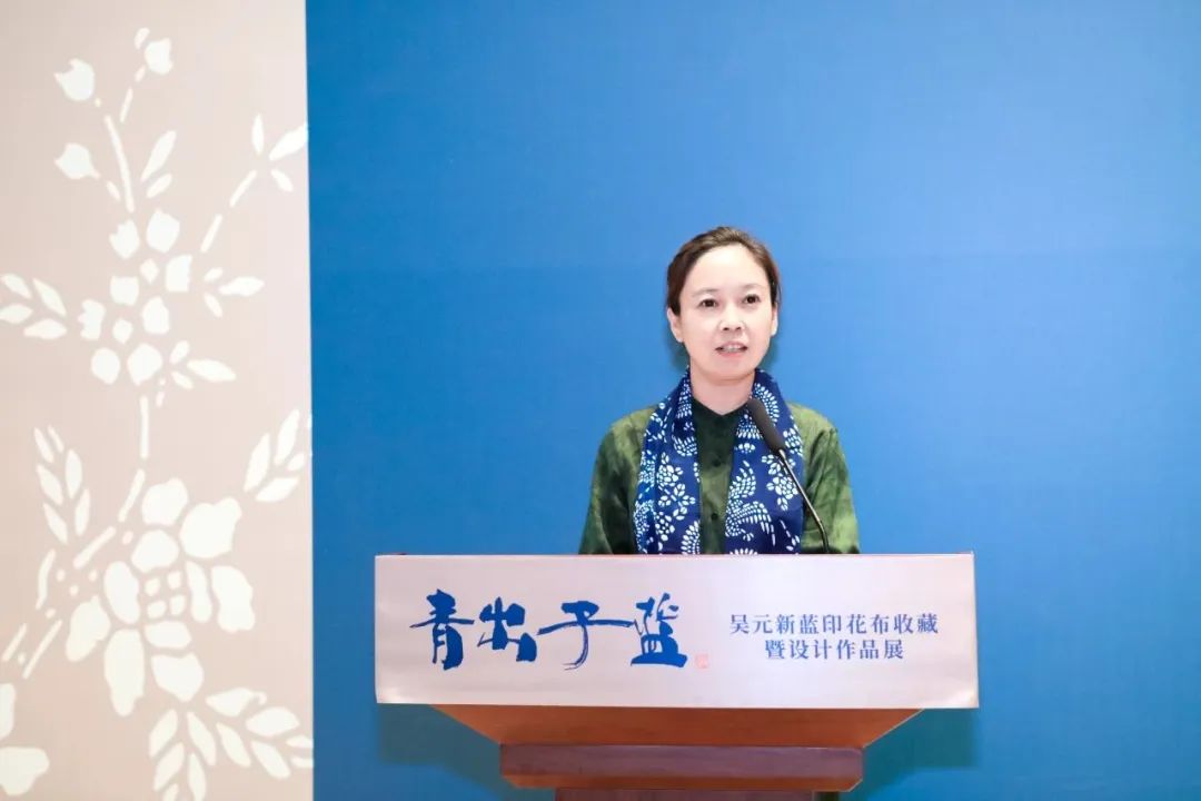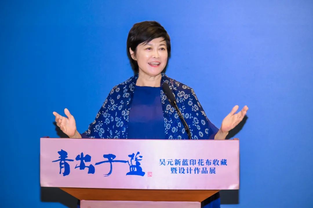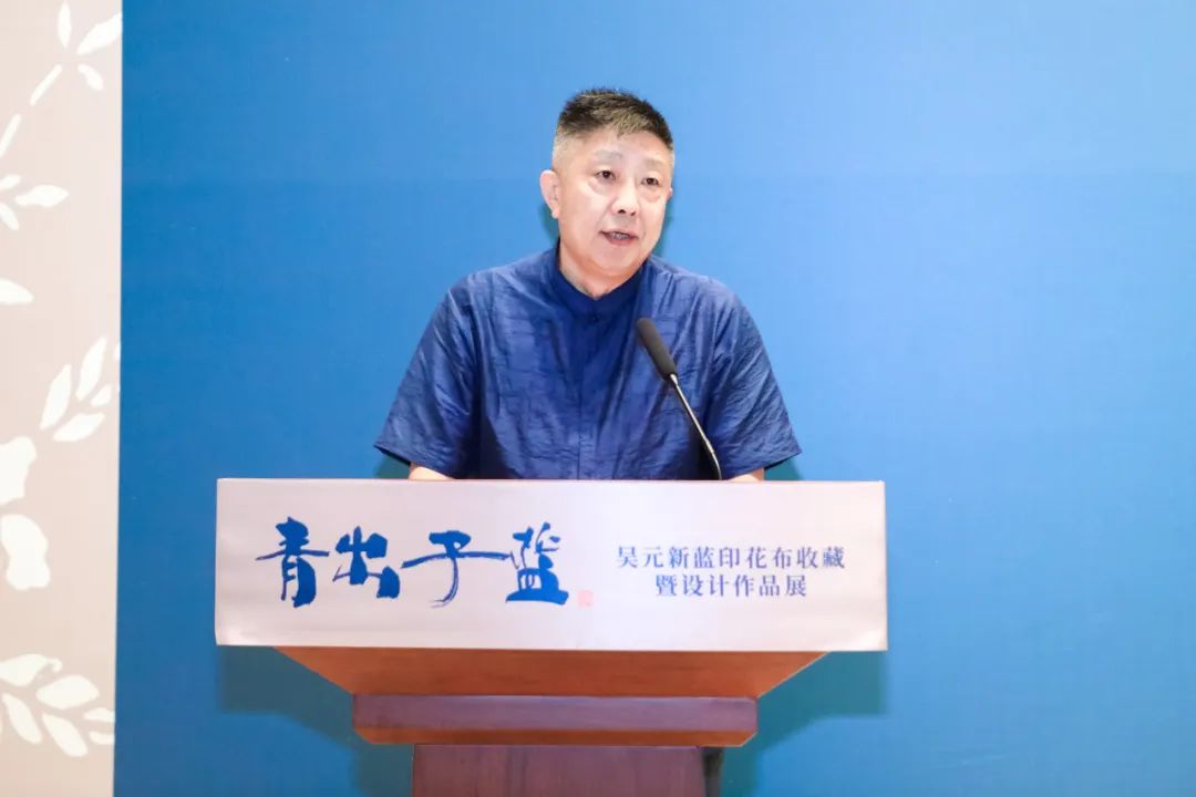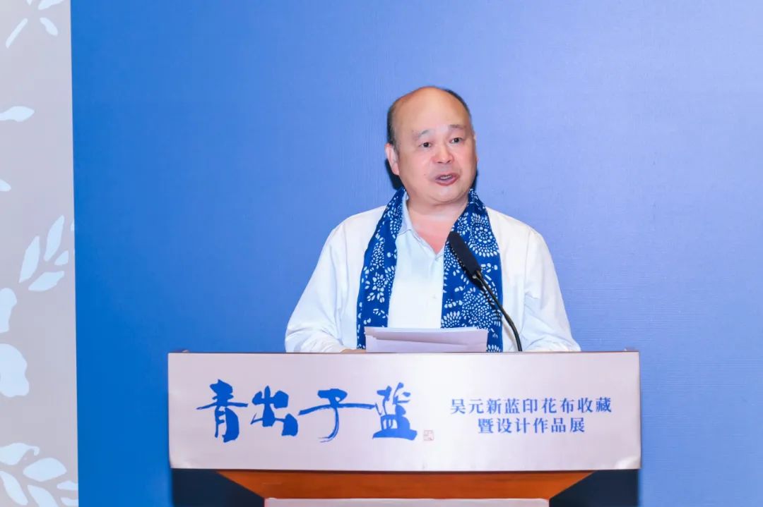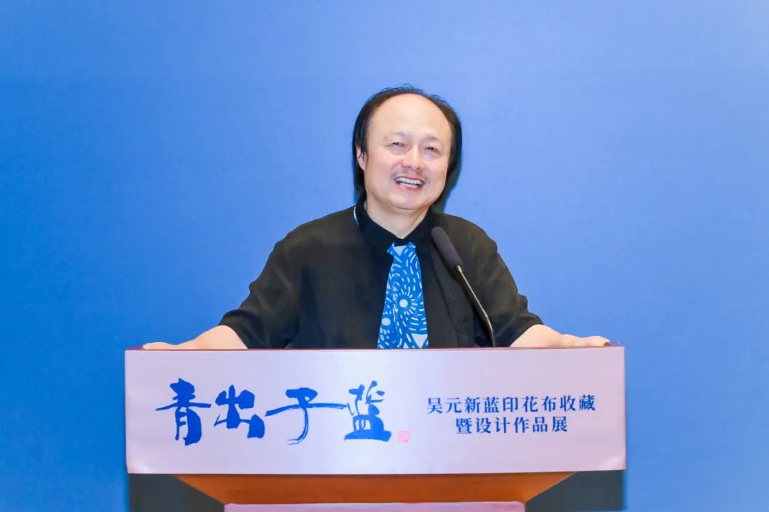 当然,还要感谢此次展览的策展人,感谢所有参与这次展览的艺术家,以及各界朋友的支持和付出。最后,祝愿‘青出于蓝——吴元新蓝印花布收藏暨设计作品展’圆满成功!”