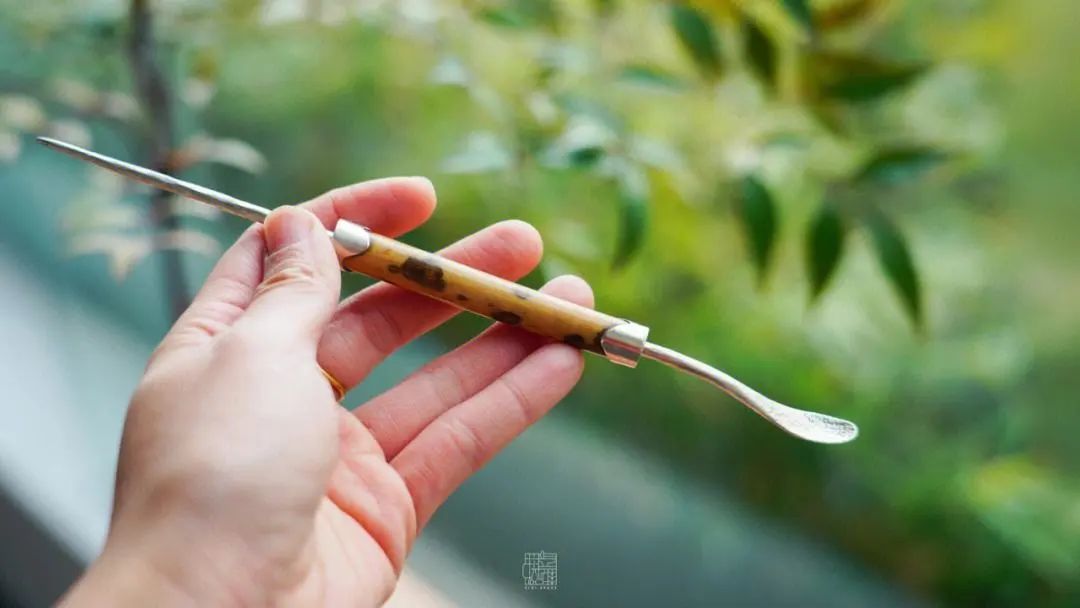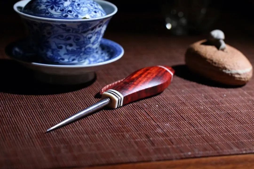 6.茶针(茶通):茶针的功用是疏通茶壶的内网(蜂巢),以保持水流畅通当壶嘴被茶叶堵住时用来疏浚,或放入茶叶后把茶叶拨匀,碎茶在底,整茶在上。