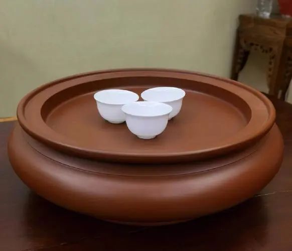 8.茶船:用来放置茶壶的容器,茶壶里塞入茶叶,冲入沸开水,倒入茶船后,再由茶壶上方淋沸水以温壶。淋浇的沸水也可以用来洗茶杯。又称茶池或壶壶承,其常用的功能大致为:盛热水烫杯、盛接壶中溢出的茶水、保温。