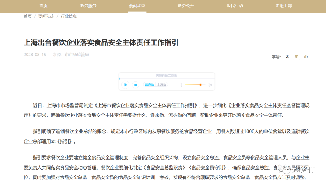 上海市市场监管局制定的《上海市餐饮企业落实食品安全主体责任工作指引》是为了加强餐饮企业的食品安全管理,保障公众的食品安全。中小型餐饮业作为市场的重要组成部分,将受到此政策的直接影响。
