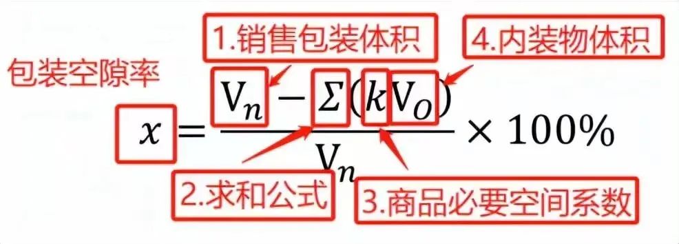包装空隙率:包装内去除内装物占有的必要空间容积与包装总容积的比率。