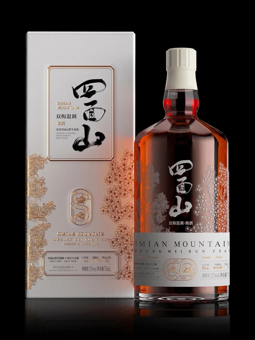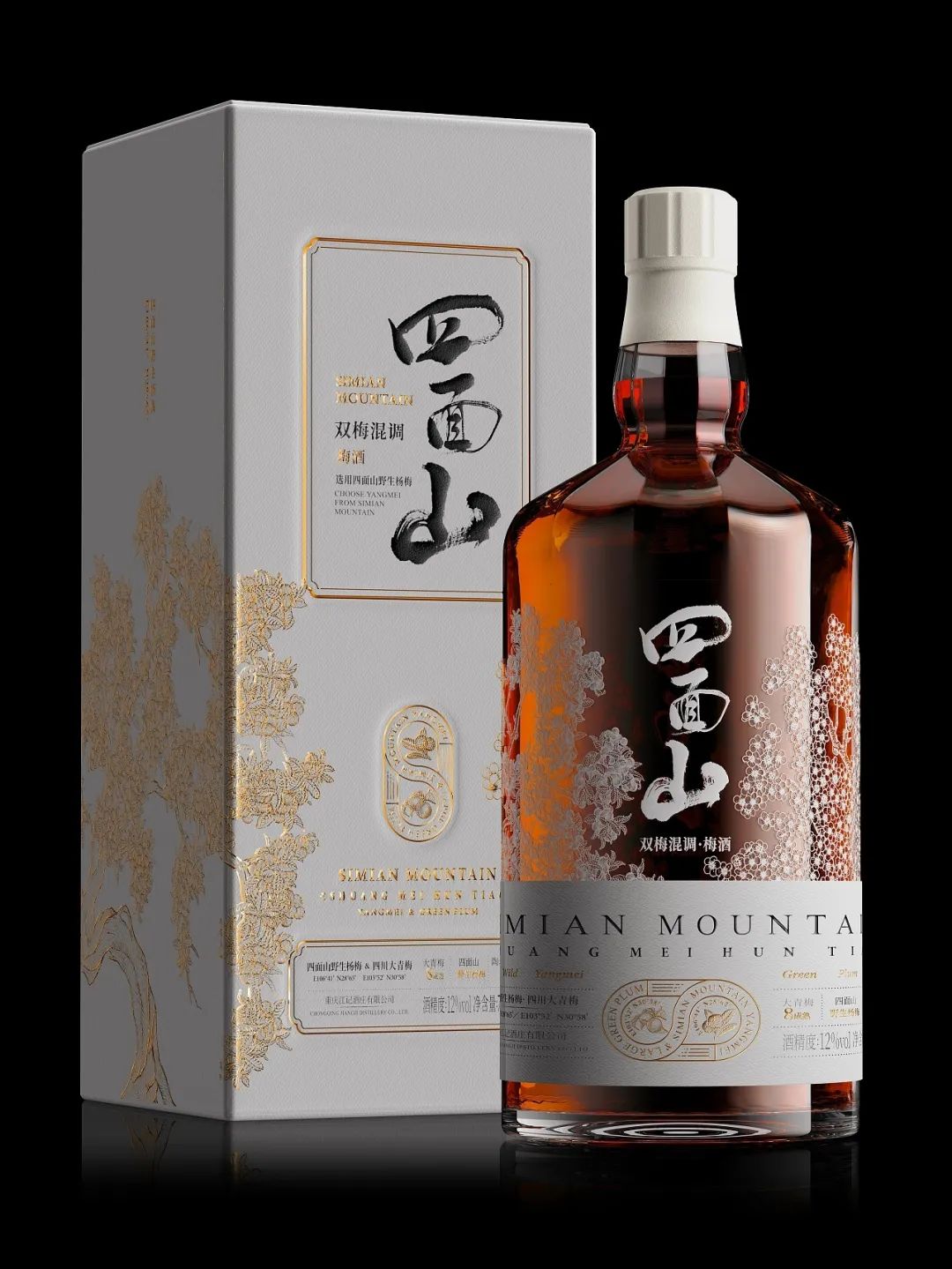 设计方面,遵循一致的风格形象,突出品牌系列感和秩序感,加深用户对品牌的认知印象。不过这款梅酒的外包装礼盒,则采用纯白包材工艺设计,内外相呼应的梅树图案作为点缀,象征产品属性,搭配毛笔字“四面山”,塑造出温婉、低调的产品气质。