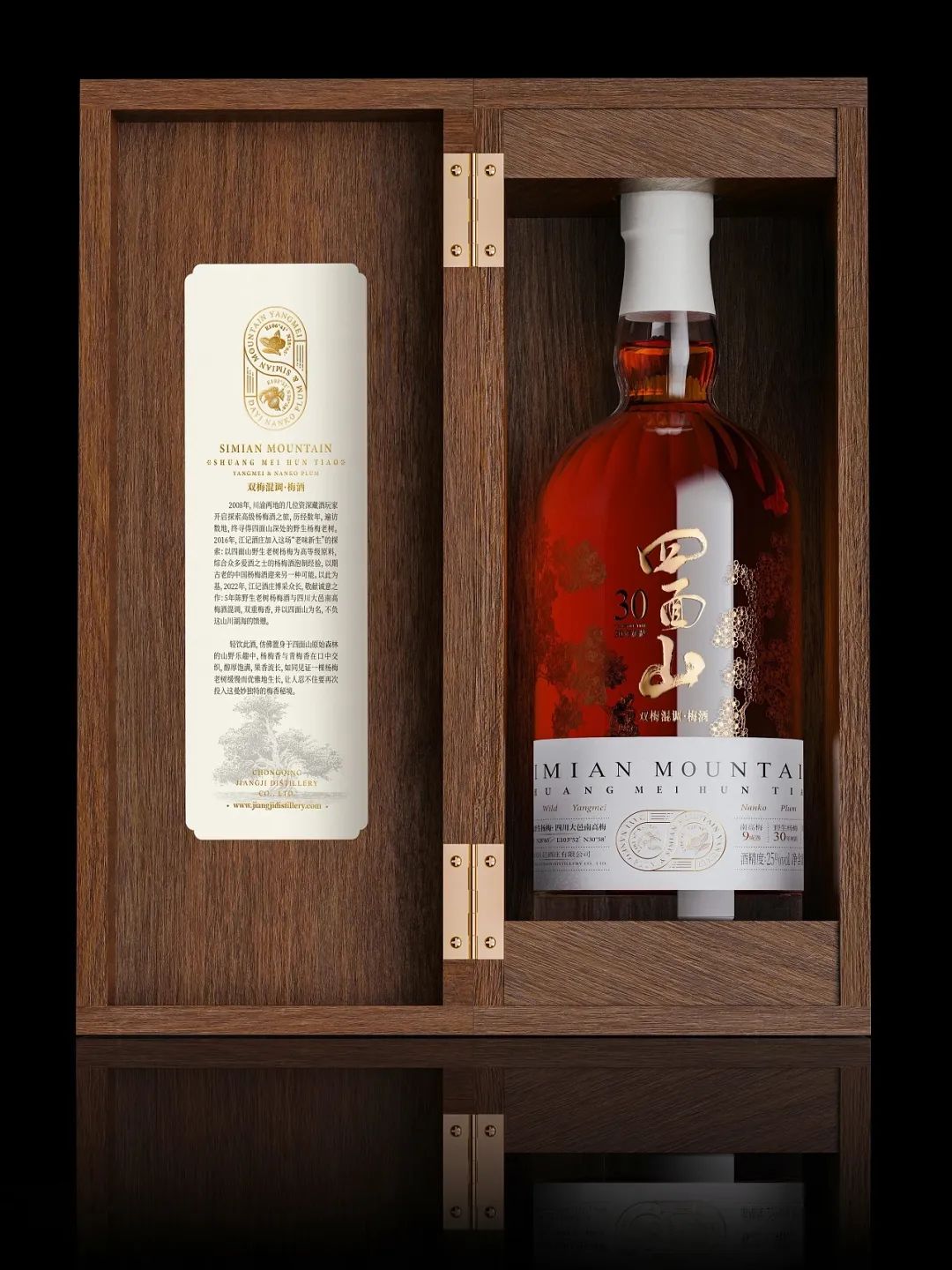 由江记酒庄推出的「四面山」高端杨梅酒品牌,以四面山野生老树为原料,综合众多爱酒之士的杨梅酒泡制经验,酿出高品质年份杨梅酒体,其中以双梅混调系列最为出名。而双梅混调系列产品中,不同的树龄也会影响梅酒的口感。这款以四面山树龄30年的野生老树杨梅为高级原料,经陶坛陈酿5年的野生老树杨梅酒,与9成熟四川大邑南高梅酒混调,形成杨梅香与青梅香交织的口感,醇厚饱满,回味无穷。