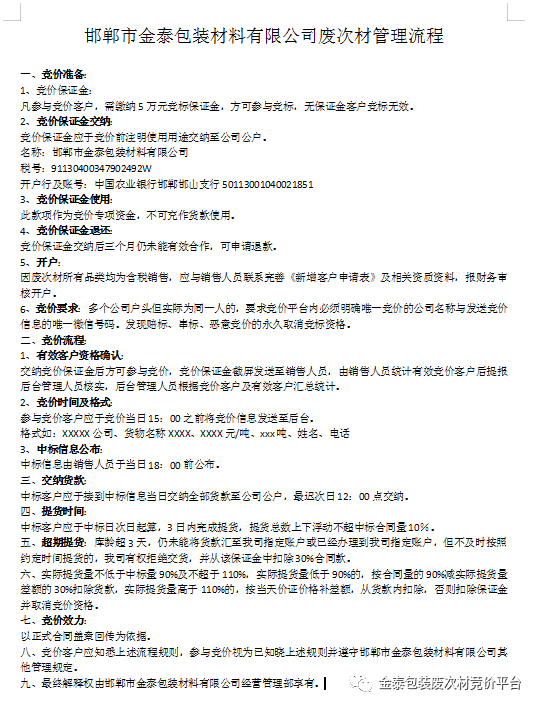 为了进一步规范竞价流程和规则,特制定了管理办法,请您知悉