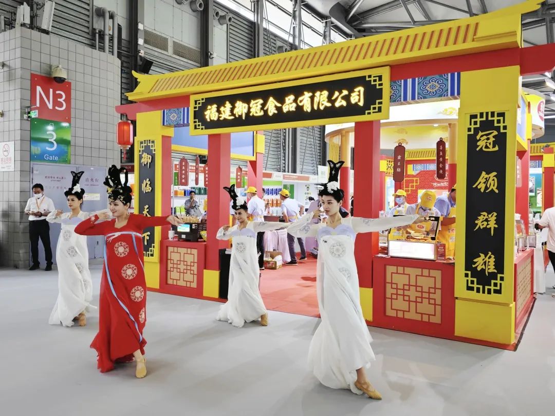 上午10时许,展会现场已是人流涌动、热闹非凡。御冠别具特色的古风展台、古装cos及歌舞表演,瞬间引人瞩目,将现场气氛一次次推向高潮。御冠旗下系列品牌产品凭借着超高品质、独特风味和丰富口味不断激发着大众味蕾新体验——肉感十足的火山石道地肠、Q弹味美的澎湖墨鱼爆蛋、“美味随时享”的即食道地肠···一经推出便立刻俘获了一众嘉宾评委的心,成为本次展会的一大亮点,前来咨询洽谈的顾客企业应接不暇、热闹非凡。本次盛会还在“珍享抖音官方旗舰店”同步直播,引来众多小伙伴的关注。