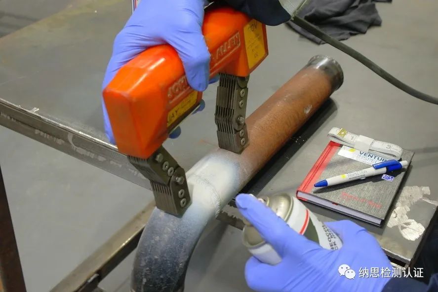 3.11.1被检工件表面不得有油脂、铁锈、氧化皮或其他粘附磁粉的物质。表面的不规则状态不得影响检测结果的正确性和完整性,否则应作适当的修理。如打磨,则打磨后被检工件的表面粗糙度Ra≤25μm。如果被检工件表面残留有涂层,当涂层厚度均匀不超过0.05mm,且不影响检测结果时,经合同各方同意,可以带涂层进行磁粉检测。