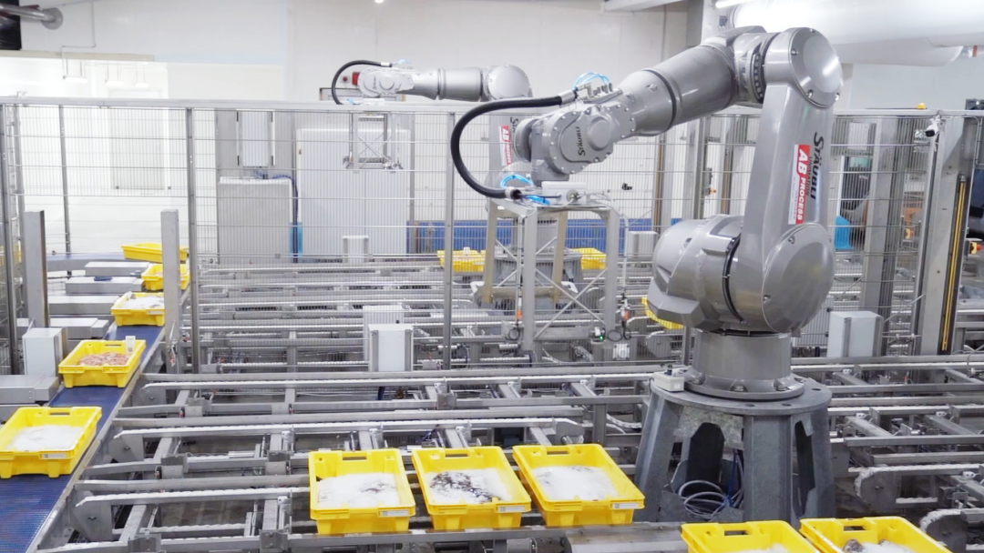 每个装海鲜的塑料筐在10 到 40 公斤之间,若采用纯人力搬运,耗时耗力。