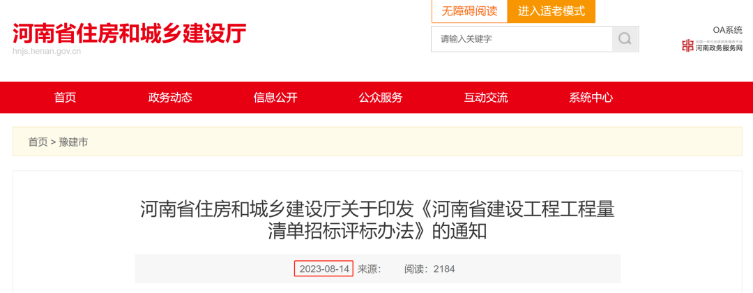 8月14日,河南省住建厅印发《河南省建设工程工程量清单招标评标办法》,自2023年12月1日起实施。