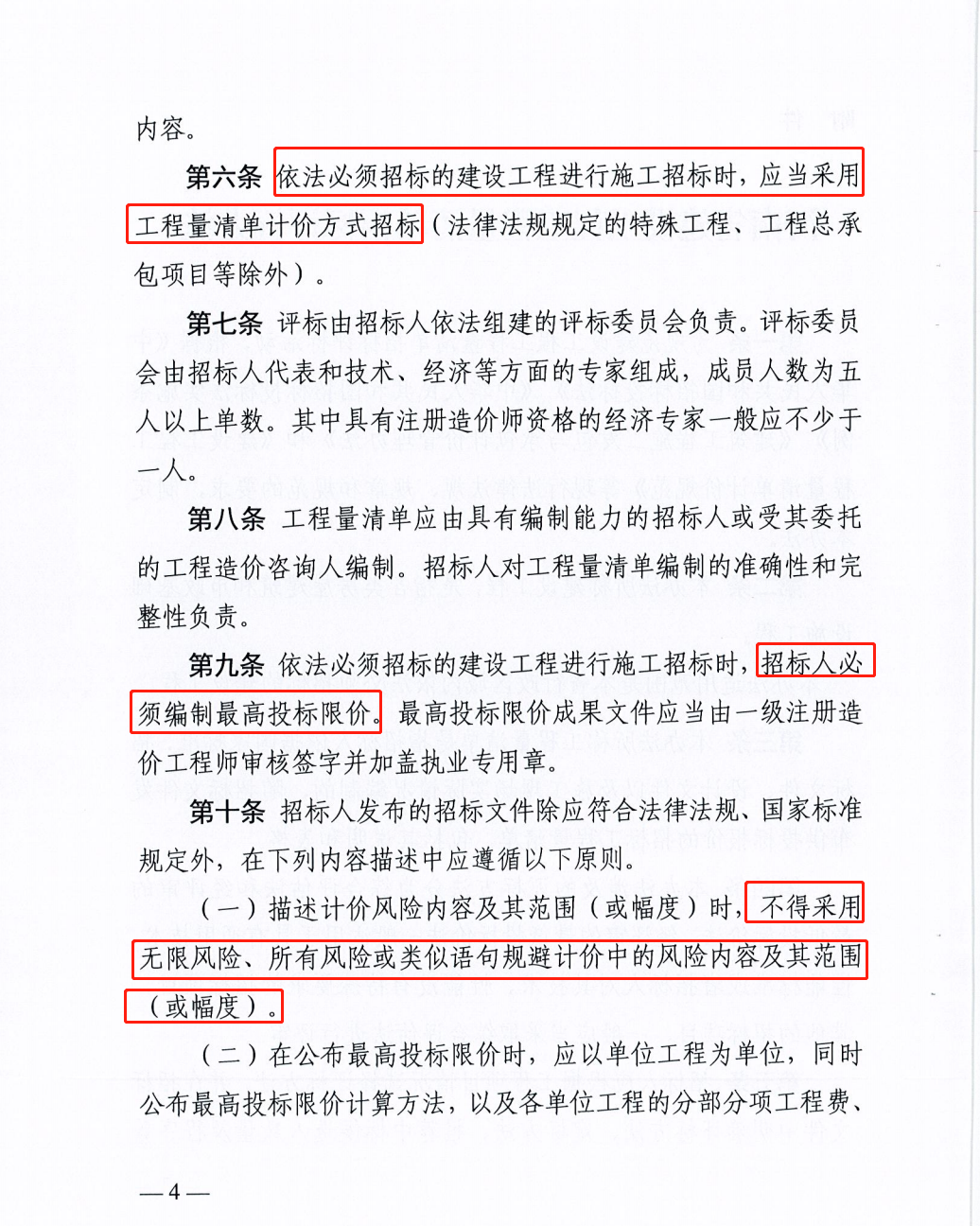 第六条 依法必须招标的建设工程进行施工招标时,应当采用工程量清单计价方式招标。