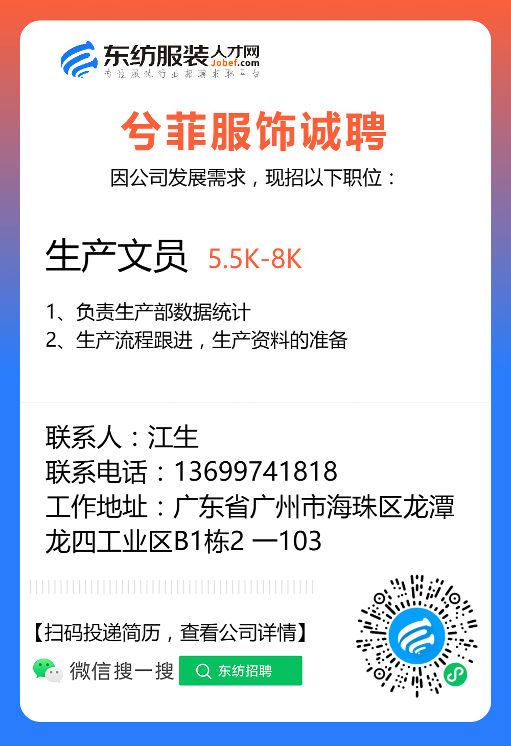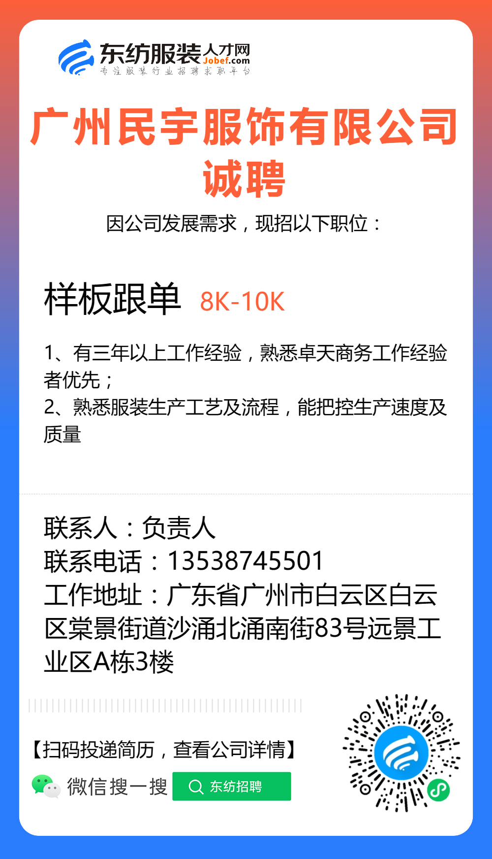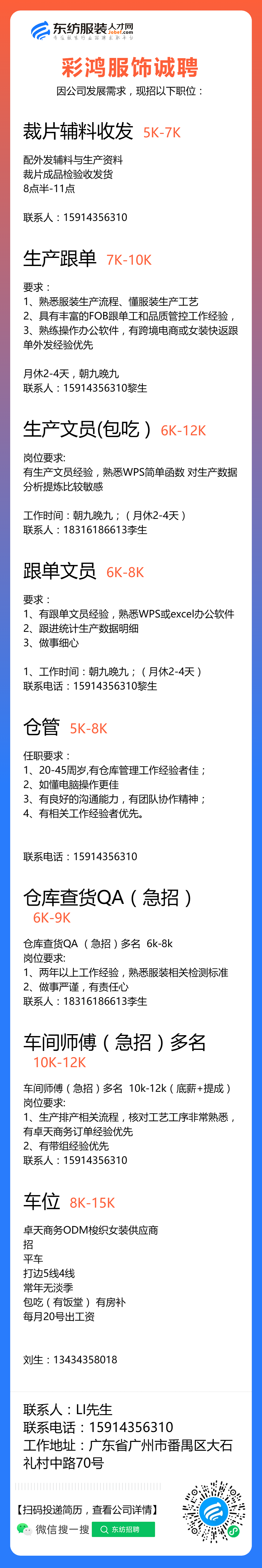 服装招聘·工厂类丨8. 23 号,跟单、采购、车位、裁床、尾部……