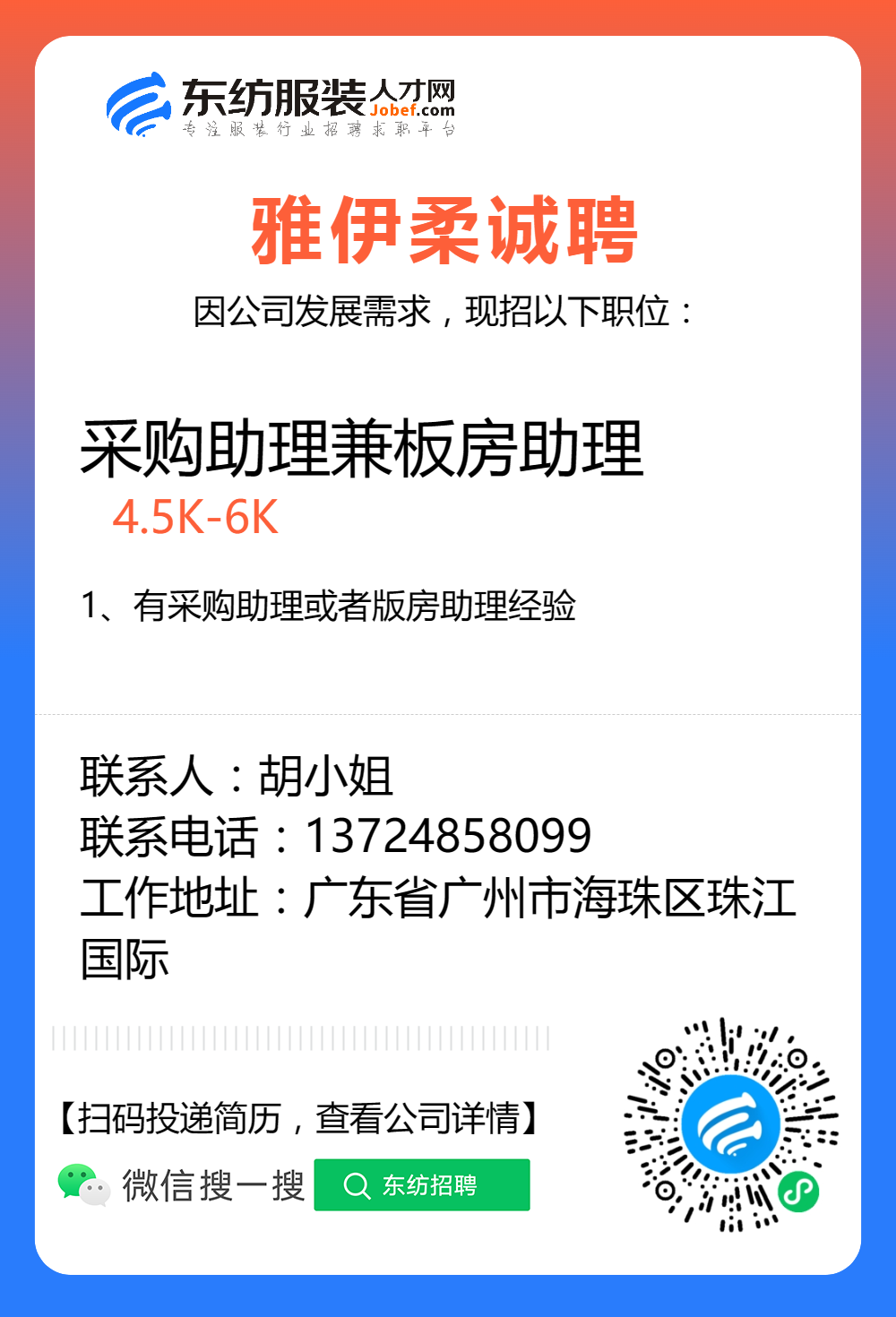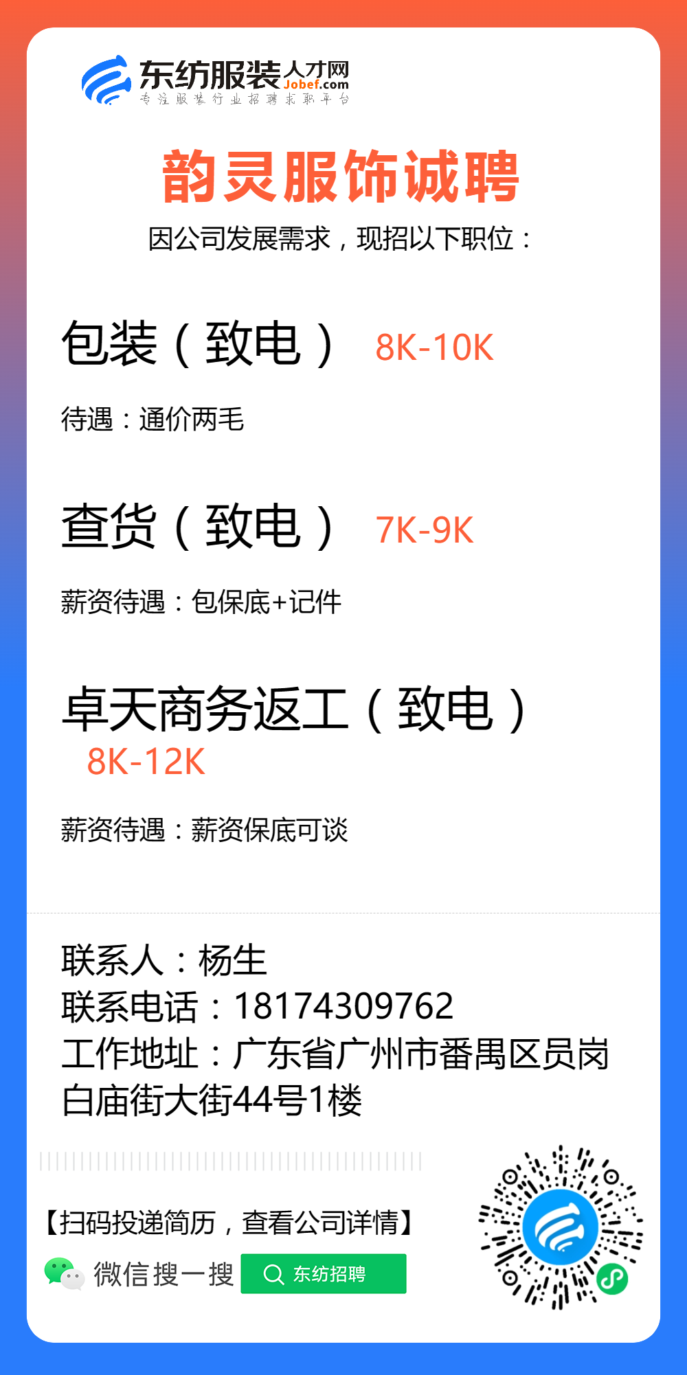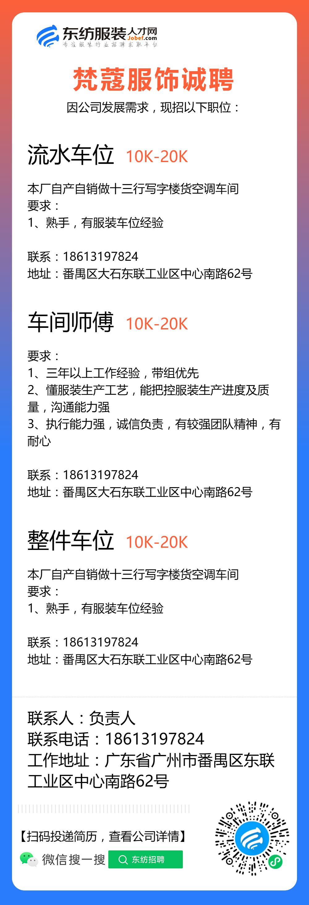 服装招聘·工厂类丨8. 23 号,跟单、采购、车位、裁床、尾部……