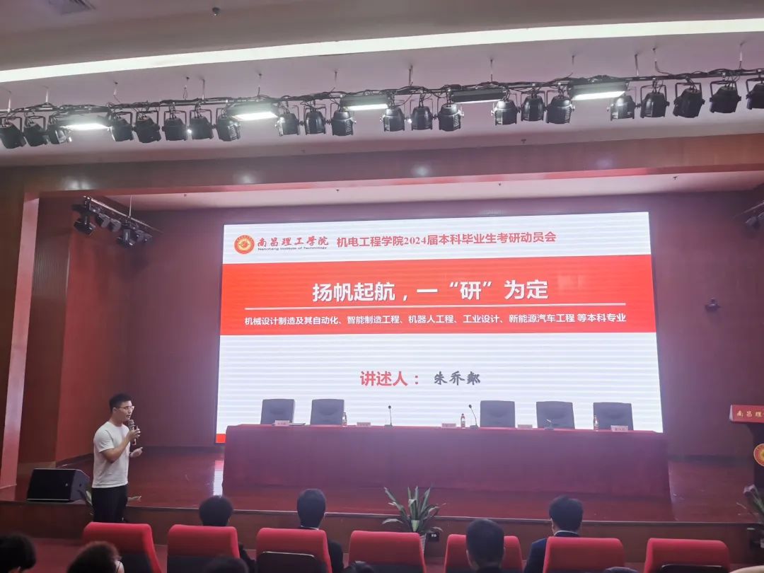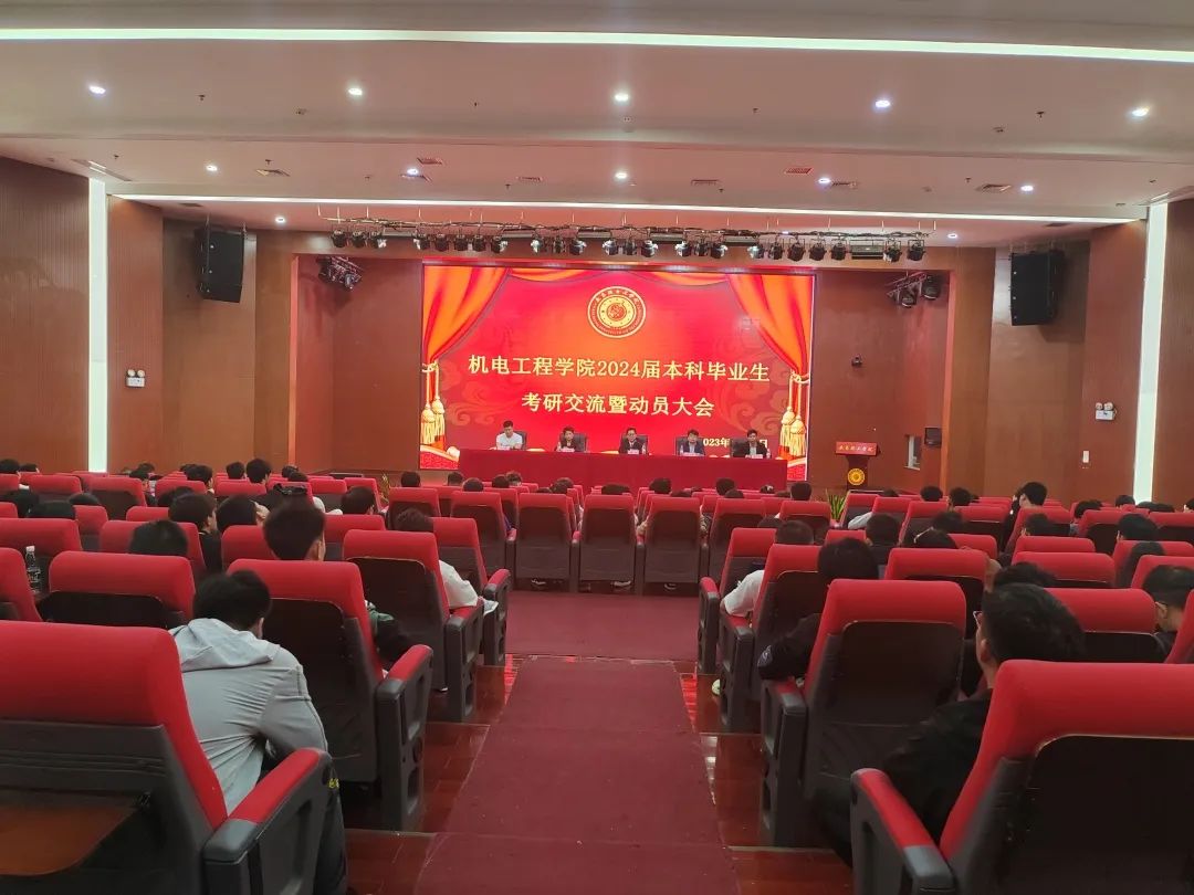 为进一步加强学风建设,充分调动机电学子考研积极性,增强考研学子信心,2023年5月22日19:00,机电工程学院在航天报告厅召开2024届本科毕业生考研交流暨动员大会。机电工程学院党委书记苗士光、副院长李柯、院长助理衷菊霞、学工科科长董风磊、全体辅导员以及2024届本科毕业生参加此次大会。大会由学工科科长董风磊主持。