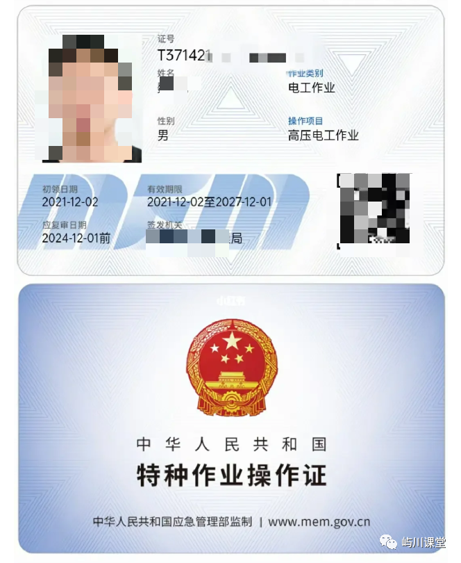 特种作业操作证,由中华人民共和国应急管理部监制,各级人民政府安全生产监督管理部门颁发,统一式样、标准及编号。