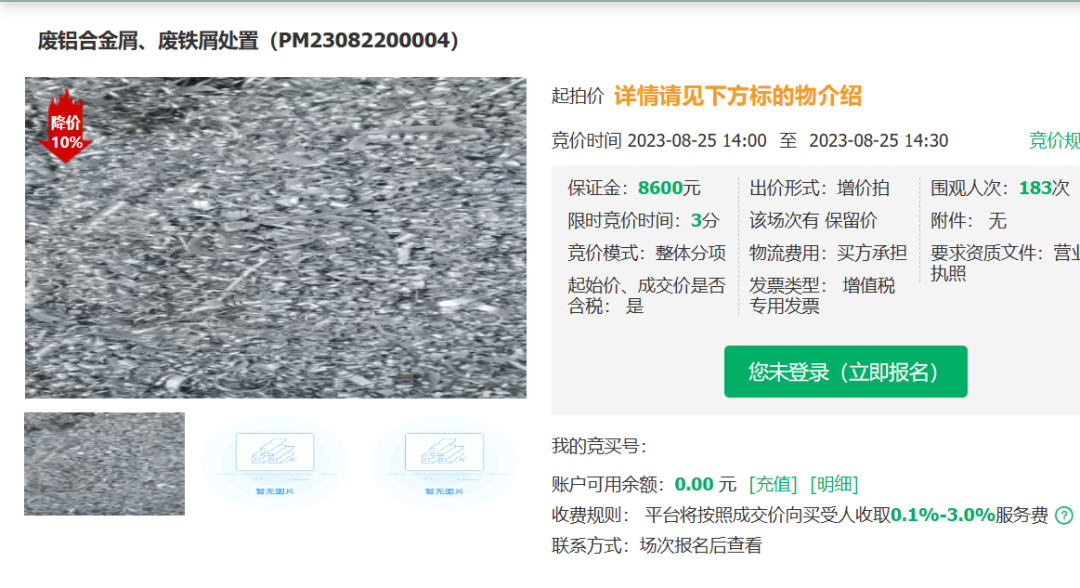 在航天再生资源交易专区,新上线发布8批闲置和废旧实物的竞拍处置项目。具体包括“【上海】8台拆解自卸车”“【上海】一批BIPV光伏电站发电设备”“【西安】白刚玉微粉450吨(年预估量)”“【天津】4吨废铝合金屑、10吨废铁屑”“【北京】铝屑、钛屑、铌屑、铜屑等材料”“【天津】3吨废铝合金”“【西安】12,000千克紫铜边角”“【西安】8,000千克钛边角”。