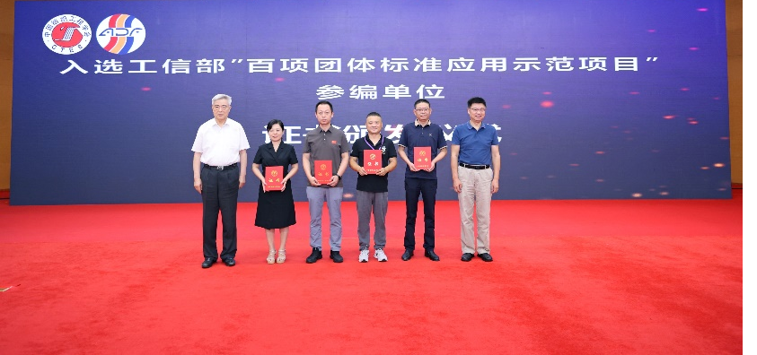会议举行了入选工信部“百项团体标准应用示范项目”《防静电袜》标准参编单位证书颁发仪式。由国务院原参事张纲、中国标准化研究院原副院长邱月明为参编单位代表颁发证书。