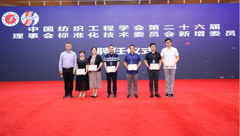 会议举行了中国纺织工程学会第二十六届理事会标准化技术委员会新增委员聘任仪式。由伏广伟理事长为增补委员颁发证书。