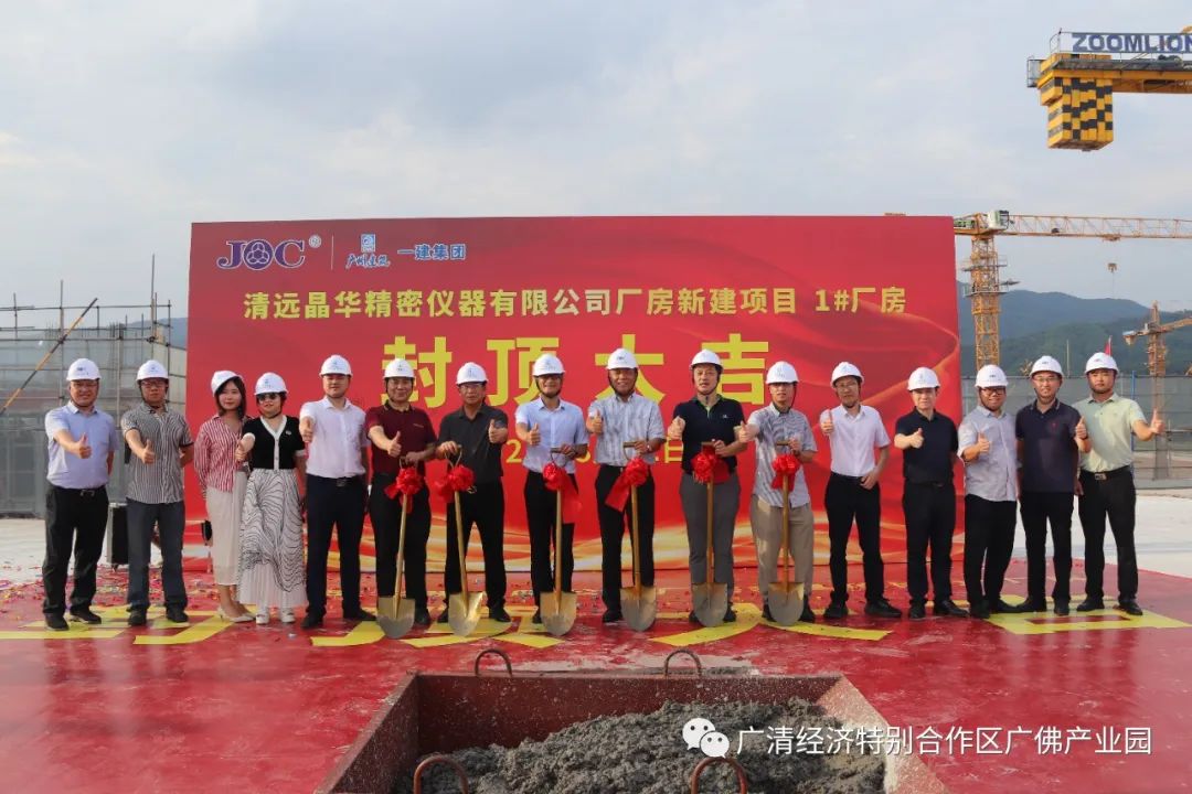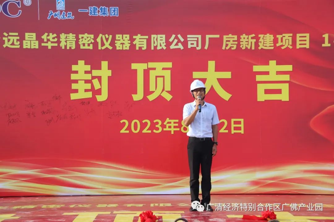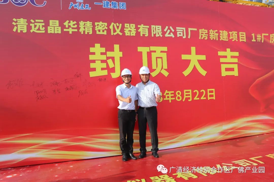 2023年8月22日下午,广佛(佛冈)产业园清远晶华精密仪器有限公司厂房新建项目举行封顶仪式,园区党工委书记、管委会主任林吴养,党工委委员李光锐,管委会各局(办)及企业负责人参加。