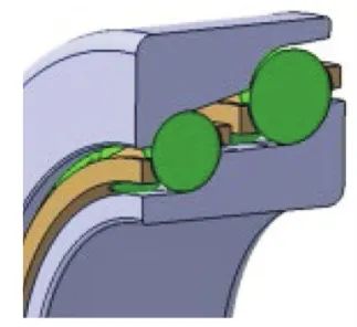 ·模型条件(图2):所分析的保持架兜孔位于轴承顶部(12点钟位置)来模拟支承水平轴(选择储油最不利的位置)