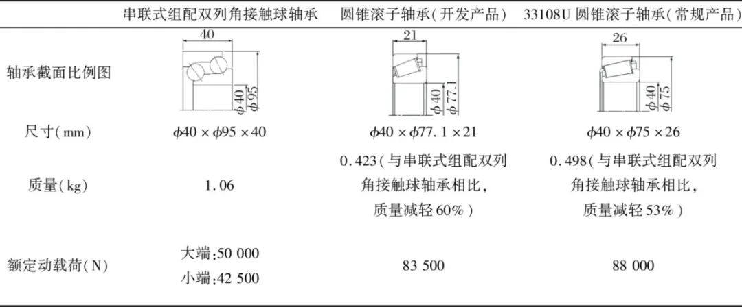 表2 具有与串联式组配双列角接触球轴承相同计算寿命的低温升低转矩圆锥滚子轴承的研究示例