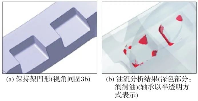 通过油流分析验证了凹形用于保持架兜孔大端边缘所实现的储油功能的有效性。油流分析条件如下所示。