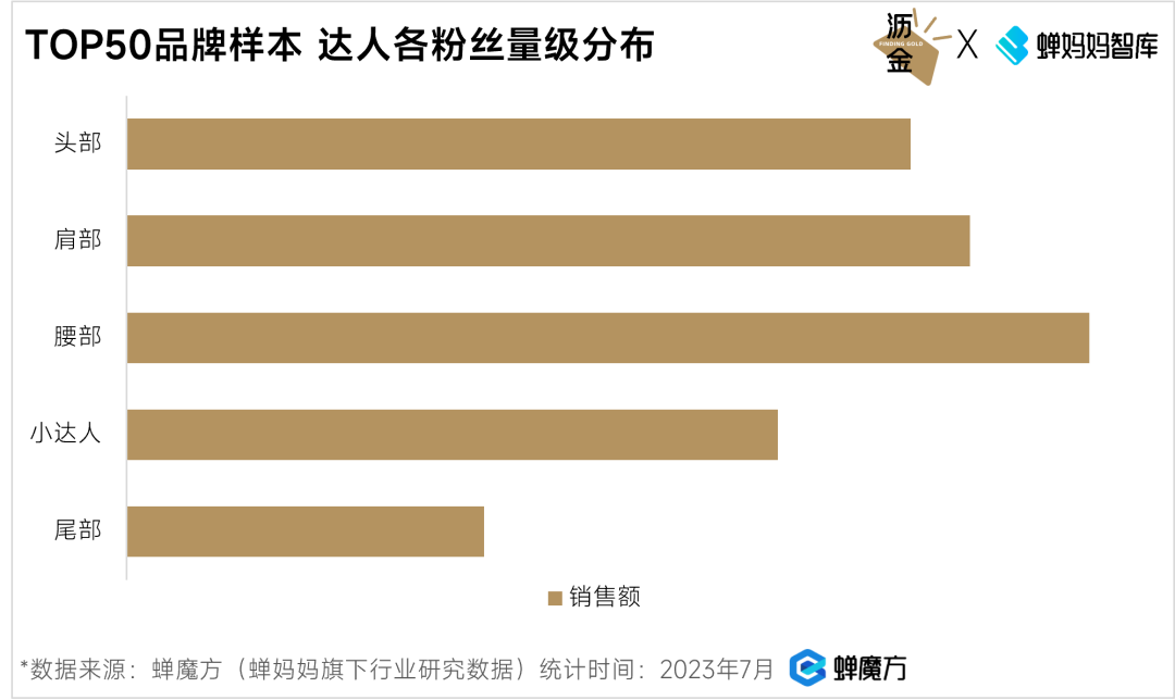 TOP50品牌主要采用“大量腰、肩部达人+少量头部达人”的投放策略带动销售额增长。
