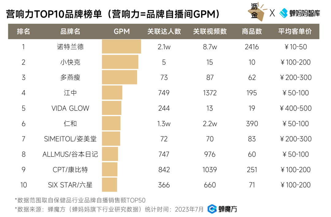 小快克关联达人、视频、商品数最低,但其爆品“儿童钙铁锌软糖”切中小众儿童功能性保健品垂直赛道,叠加快克品牌的高国民度,让其GPM排名第二。