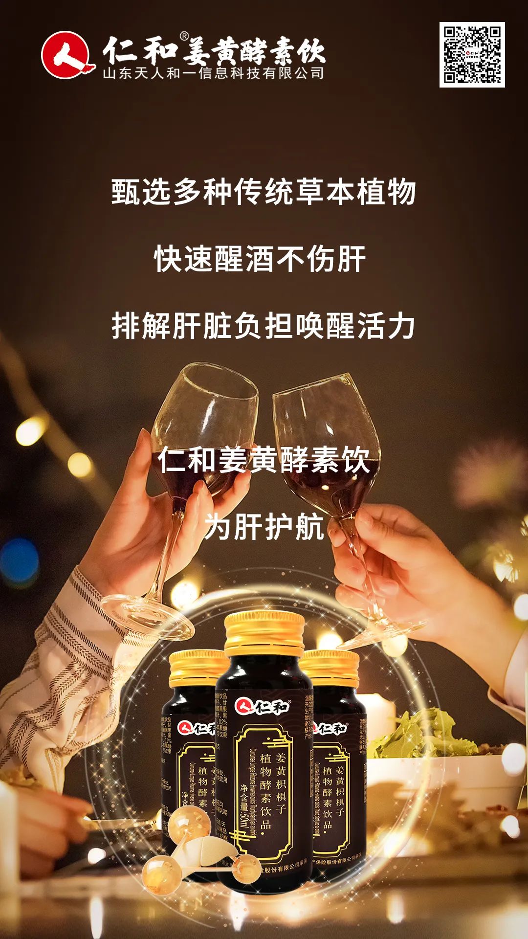 仁和共享解酒饮结合李时珍《本草纲目》醒酒汤古法和现代生物发酵技术,科学配比添加了葛根和枳椇子提取物等有效功能成分,具有醒酒护肝、养护肠胃和化解宿醉的作用。