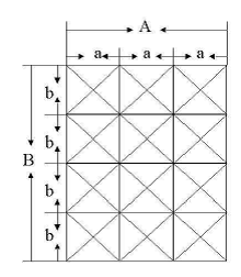 2、当风口面积大于0.3㎡时,对于矩形风口,见图10所示,按风口断面的大小划分成若干个面积相等的矩形,测点布置在图每个小矩形的中心,小矩形每边的长度为200mm左右。