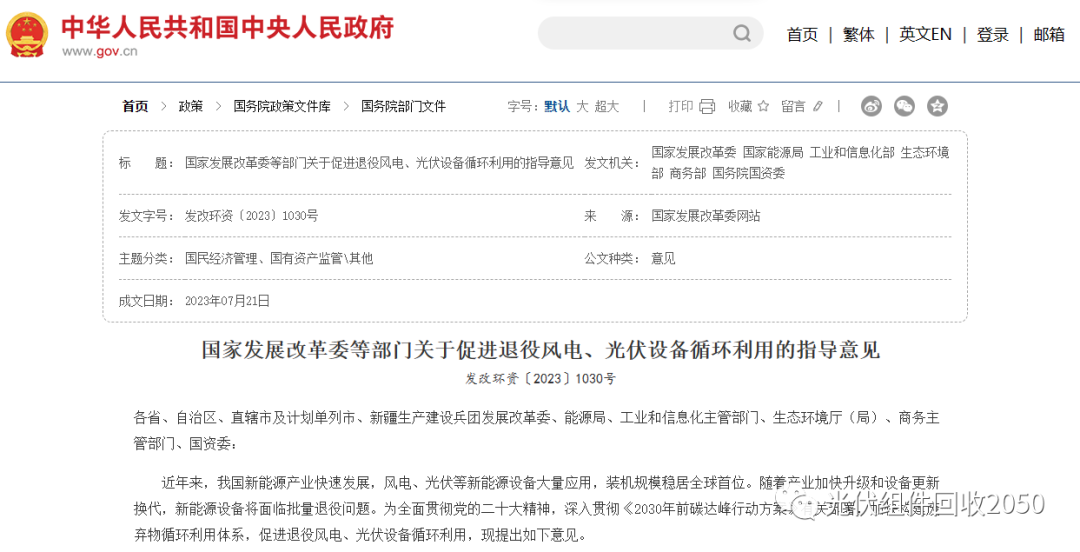 【2023】关于促进退役风电、光伏设备循环利用的指导意见