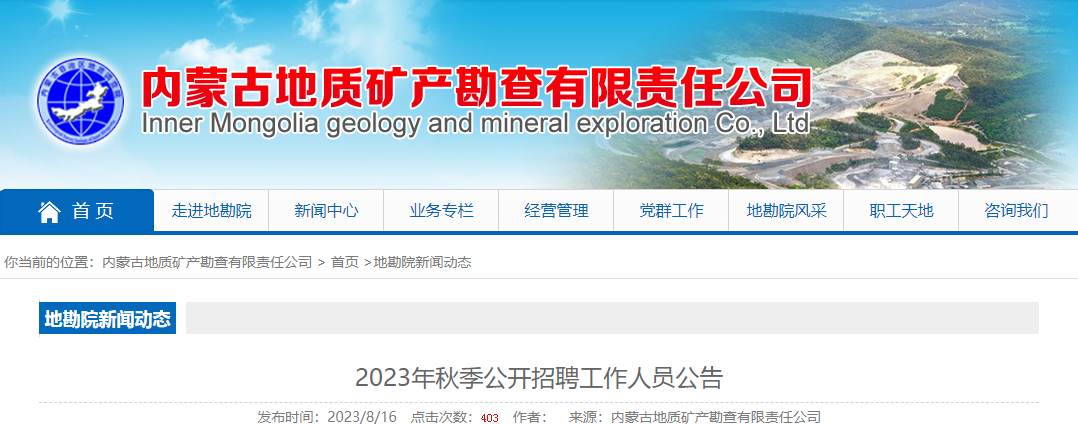 内蒙古地质矿产勘查有限责任公司2023年秋季公开招聘工作人员公告