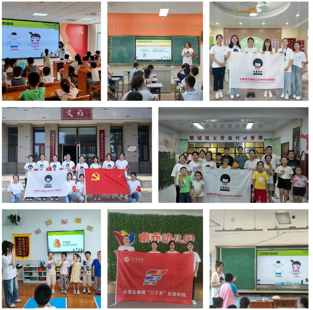 活动中,团队走进了曲阜东方学校、时庄街道中学、曲阜市陵城镇栖贤雅苑幼儿园、曲阜市儒韵宝贝幼儿园、曲阜市陵城镇玄帝庙村、曲阜市南乔幼儿园、泗水县人民医院和济宁龙行社区,为944名孩子讲授了27堂“爱护我们的身体”主题安全教育课,并发放儿童防性侵手册学生版944本,家长版64本。