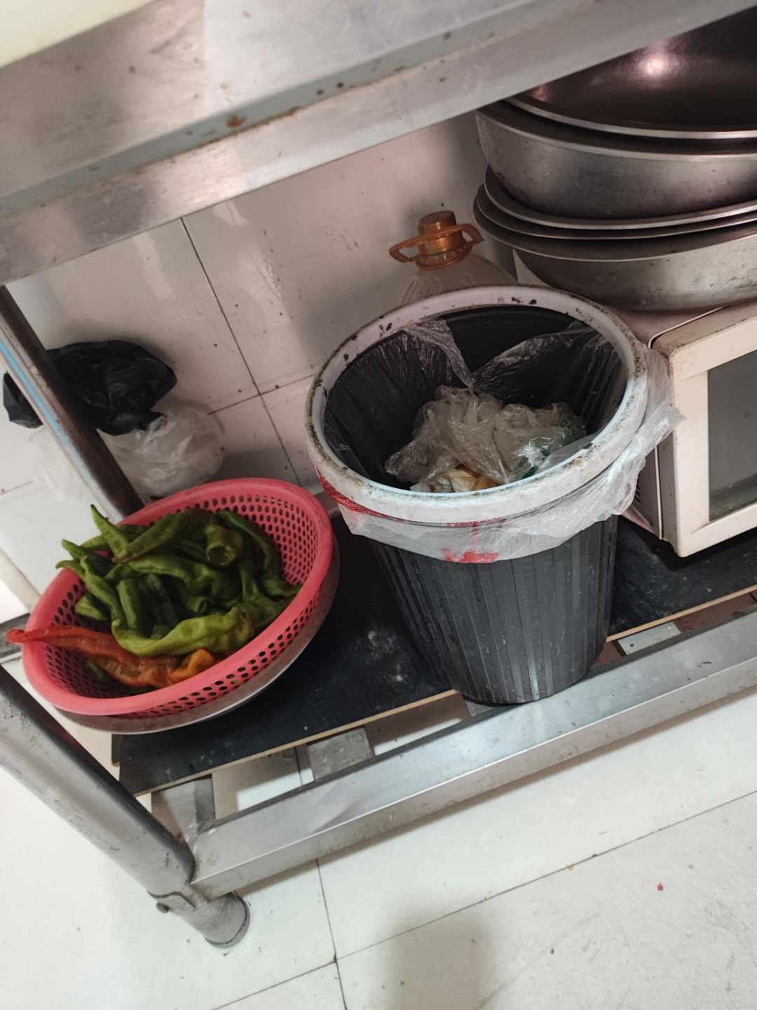 8月14日检查时,食品生产经营登记证过期,毛豆等放置室外未放置三防设施,在非食品加工区加工牛板筋,食品添加剂红曲米未按要求存放、使用,调味品区脏乱差。