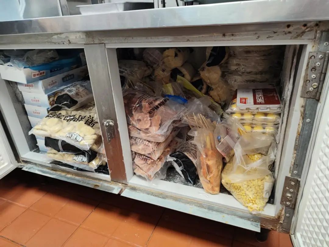 8月3日检查时,美团外卖平台食品经营许可证未更新(2023年2月24日已换发,但仍然公示2023年3月17日到期的许可证),灭蝇灯损坏未及时更新;冰柜内生熟荤素混放,且已开封的食品未密闭存放,存在食品交叉污染风险隐患。