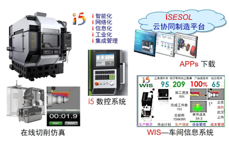 沈阳机床集团推出的i5智能机床是自主研发的拥有核心技术的智网能设备。i5是指工业化(industry)、信息化(information)、网络化(internet)、集成化(intelligent)、智能化(integrated)的有效融合。i5智能机床作为基于互联网的智能终端,实现了操作、编程、维护和管理的智能化,是基于信息驱动技术,以互联网为载体,以为客户提供“轻松制造”为核心,将人、机、物有效互联的新一代智能制造装备。